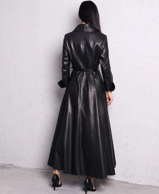 Lange Zwarte Leren Jas Metal Goth Rock Elegant