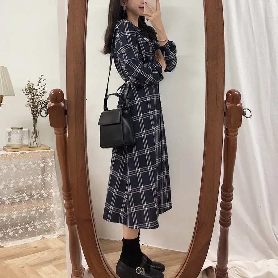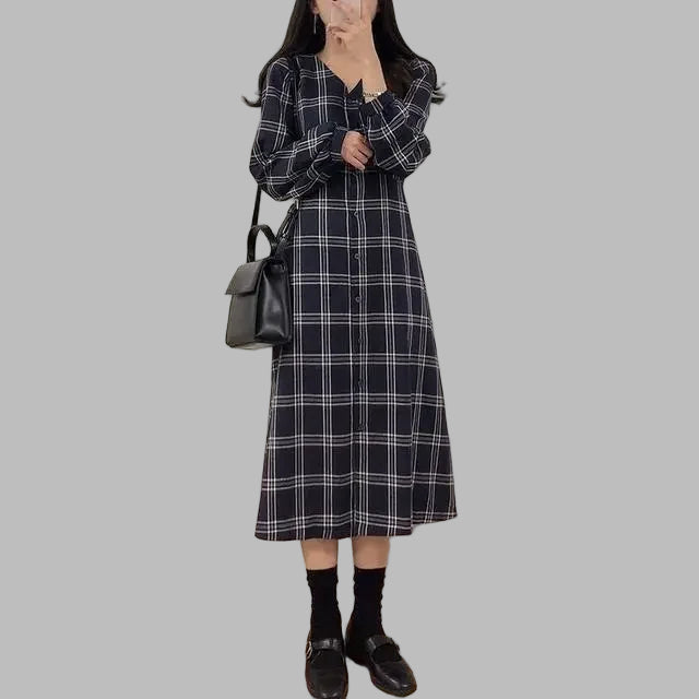 Lange Zwarte Punk Geruite Jurk met Mouwen XXL