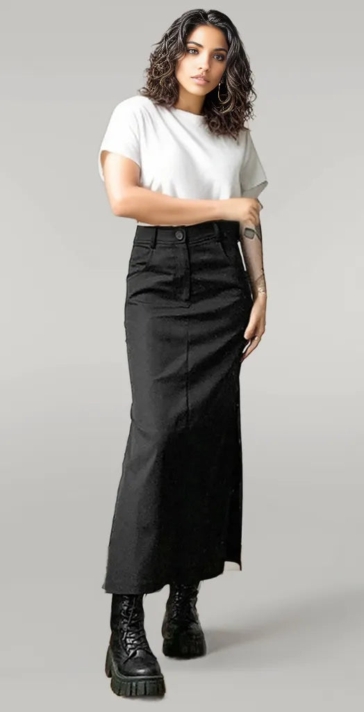 • Subtiele Ontwerpdetails: Subtiele details, zoals zakversieringen, voegen een praktisch en esthetisch accent toe aan de rok, waardoor een balans tussen functionaliteit en stijl ontstaat.