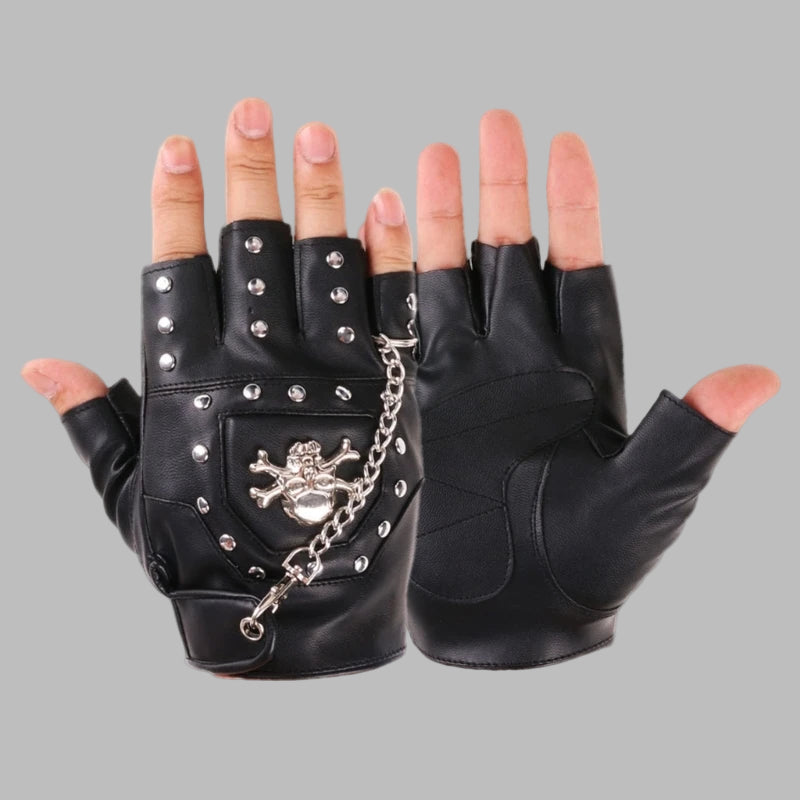 - Inhoud van de set: 1 paar punkhandschoenen zonder vingers voor mannen