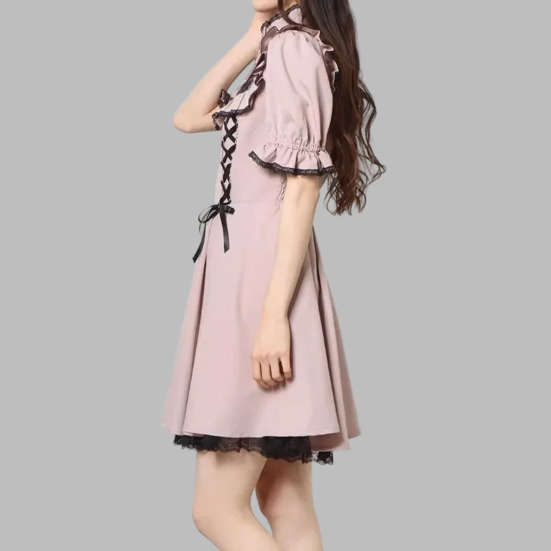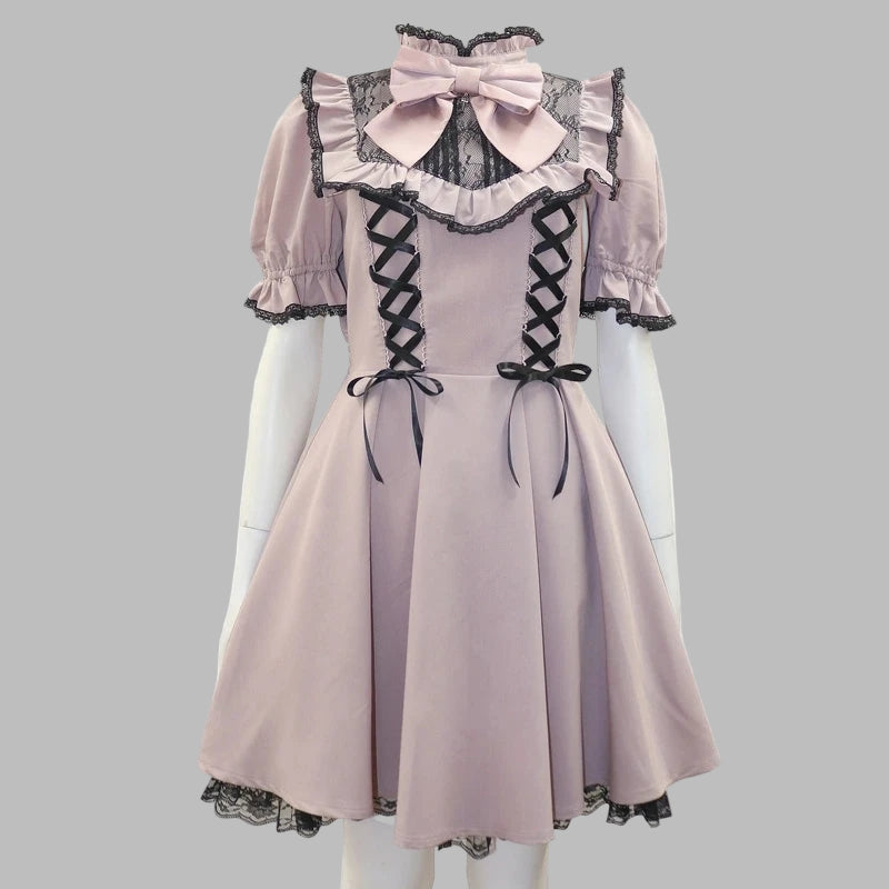 Punk Rock Jurk met Dubbele Vetersluiting en Strikken Lila L