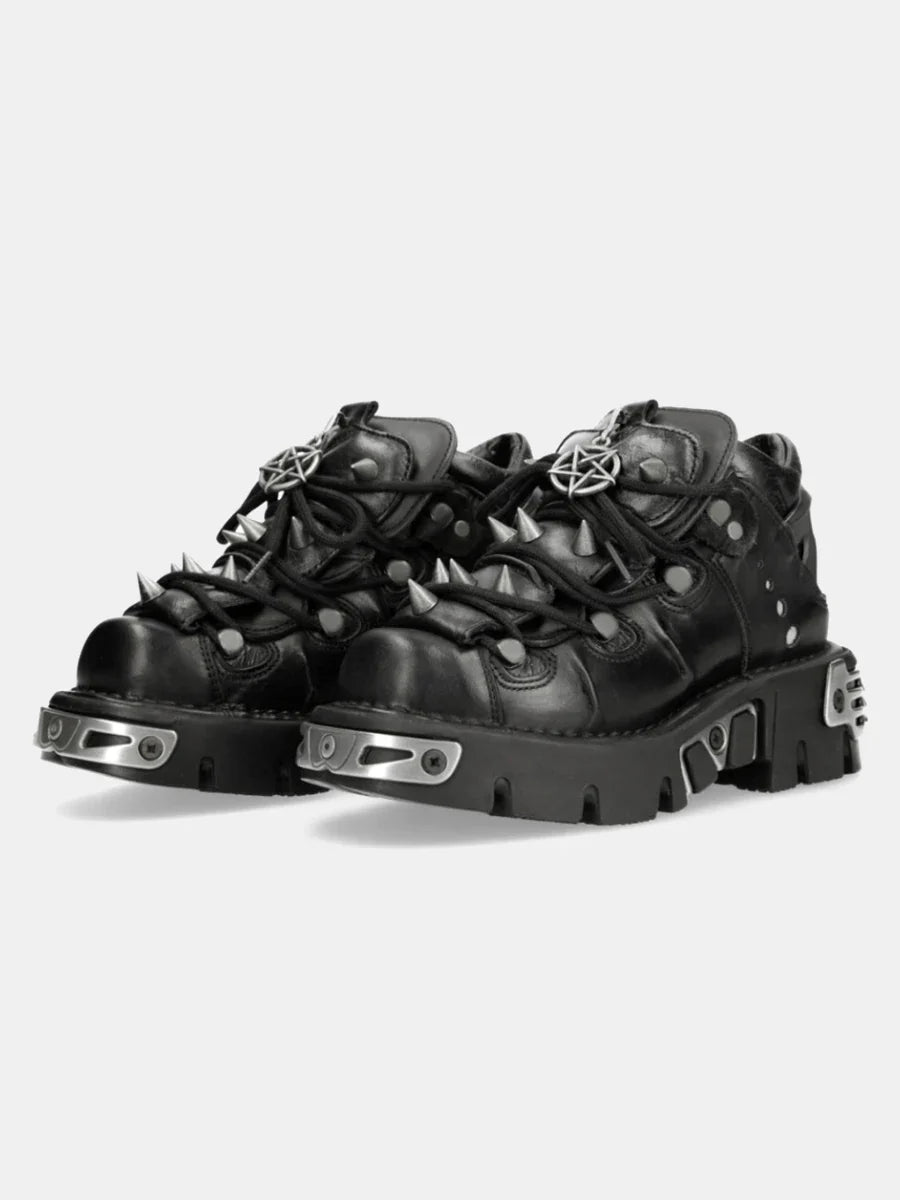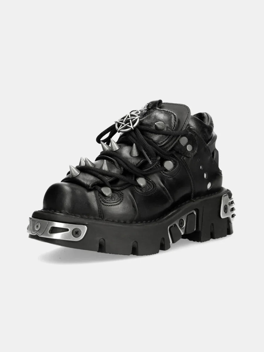 - Stijl: lage veterschoenen, geïnspireerd door punkstijl