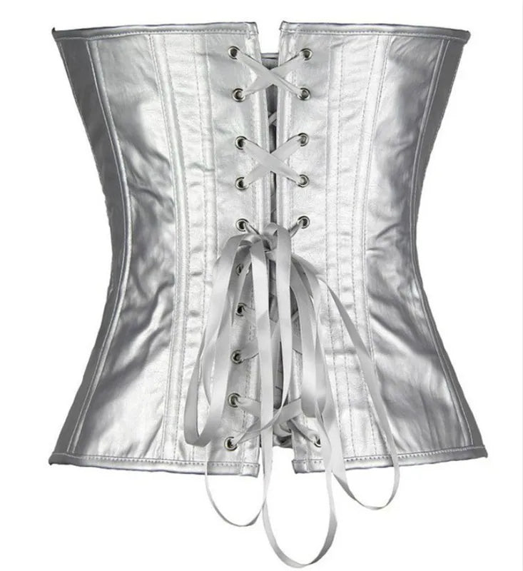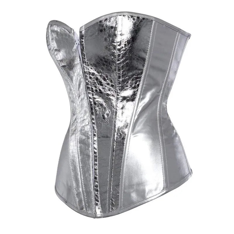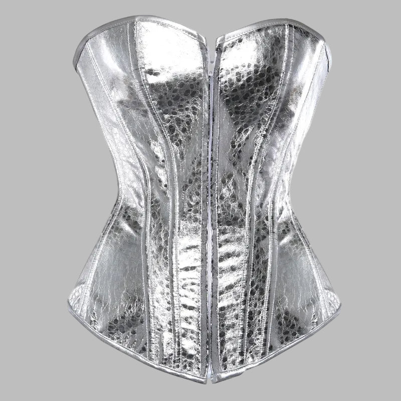 Zilveren metalen korset met slangenhuid-effect en baleinen
