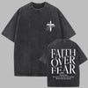 Oversized Grunge Rock T-shirt met Kruis en Opschrift "Faith Over Fear"