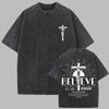 Oversized Grunge T-shirt met Kruis en Opschrift Believe Gothic