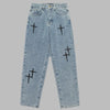 Lichtblauwe Punk Metal Jeans met Kruizen