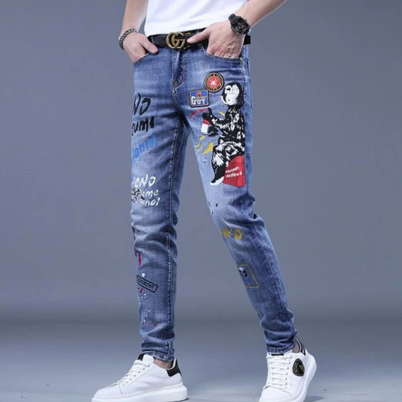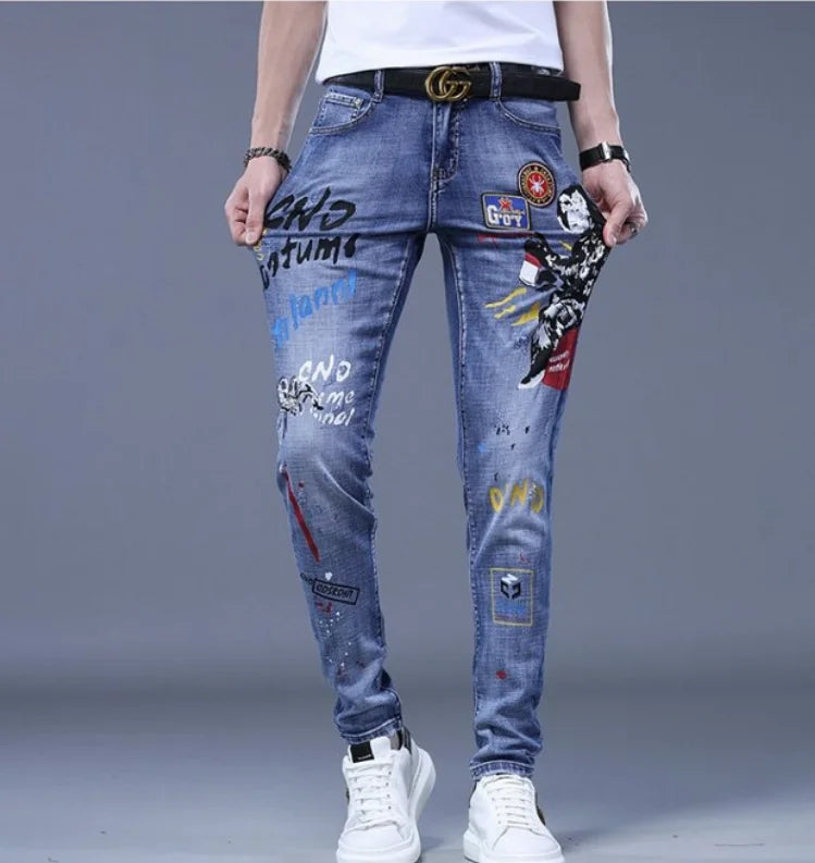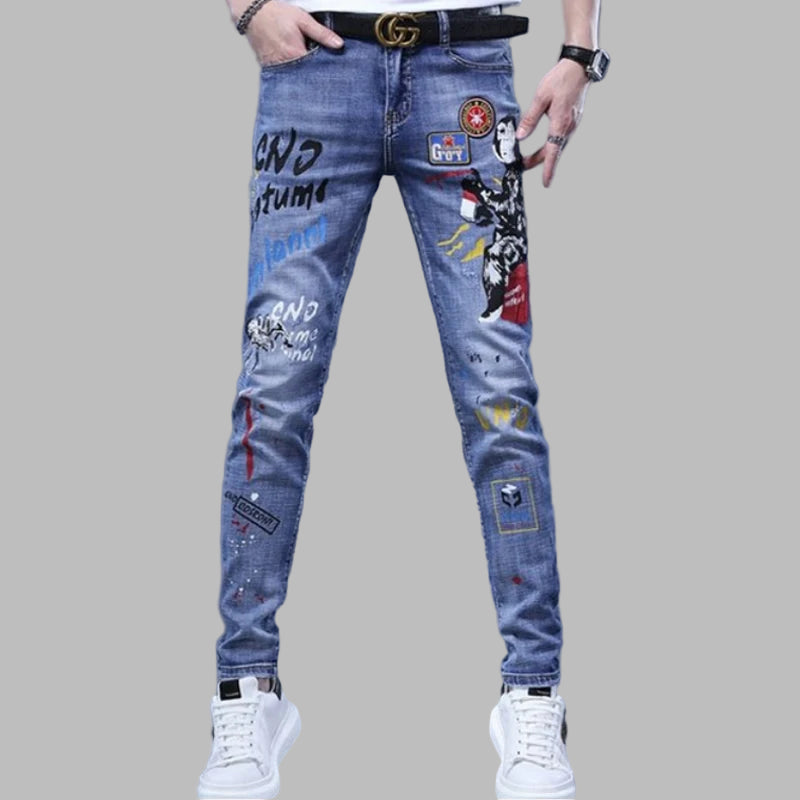 Punk Rock Blauwe Jeans met Patches en Teksten