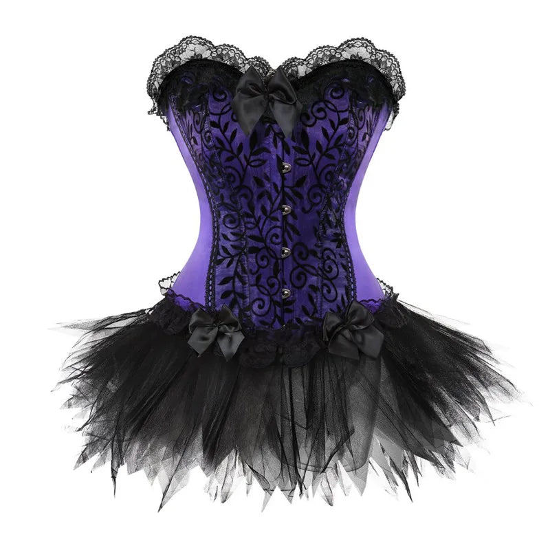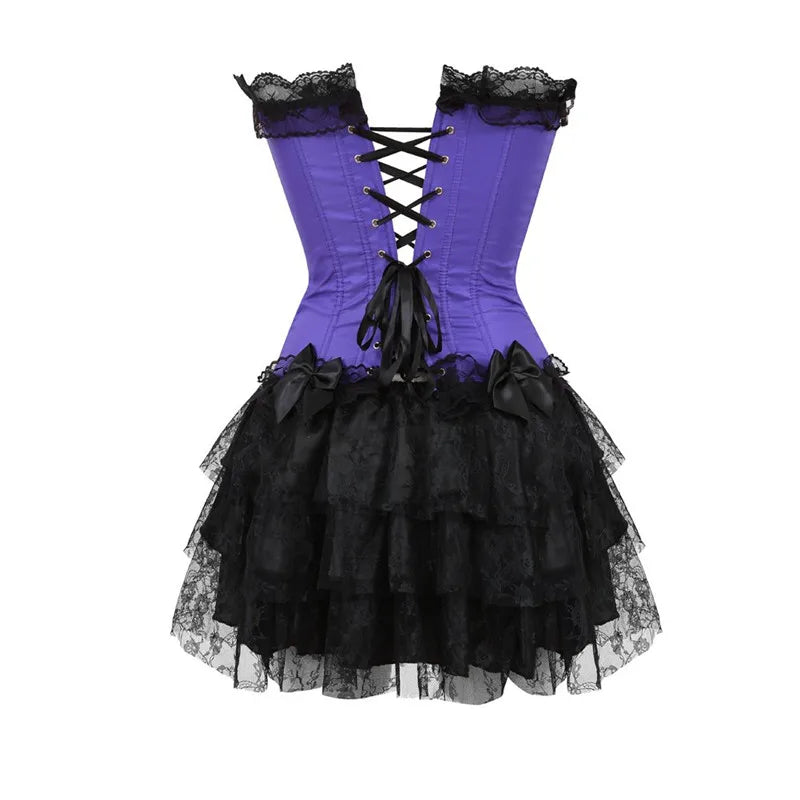 Punk Rock Korset Paars met Kant en Zwarte Rok 6XL
