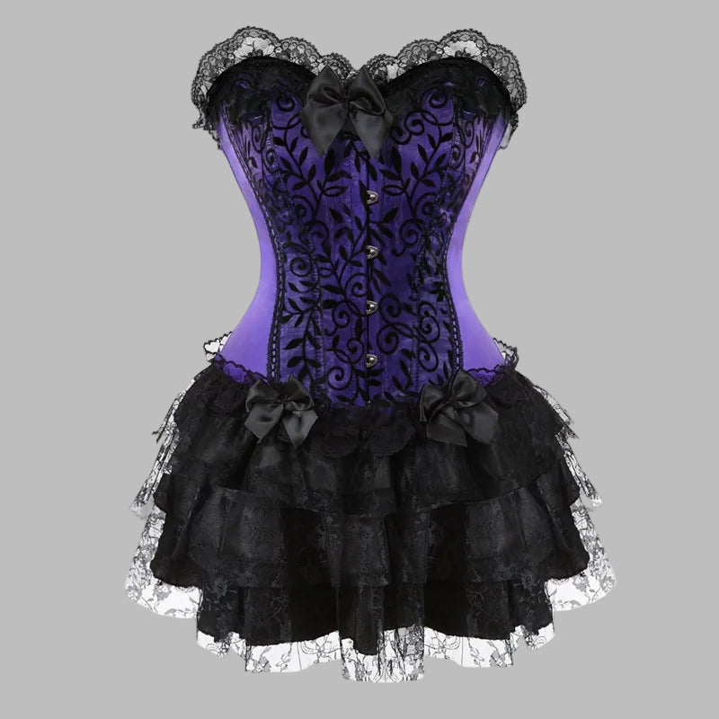 Punk Rock Korset Paars met Kant en Zwarte Rokje
