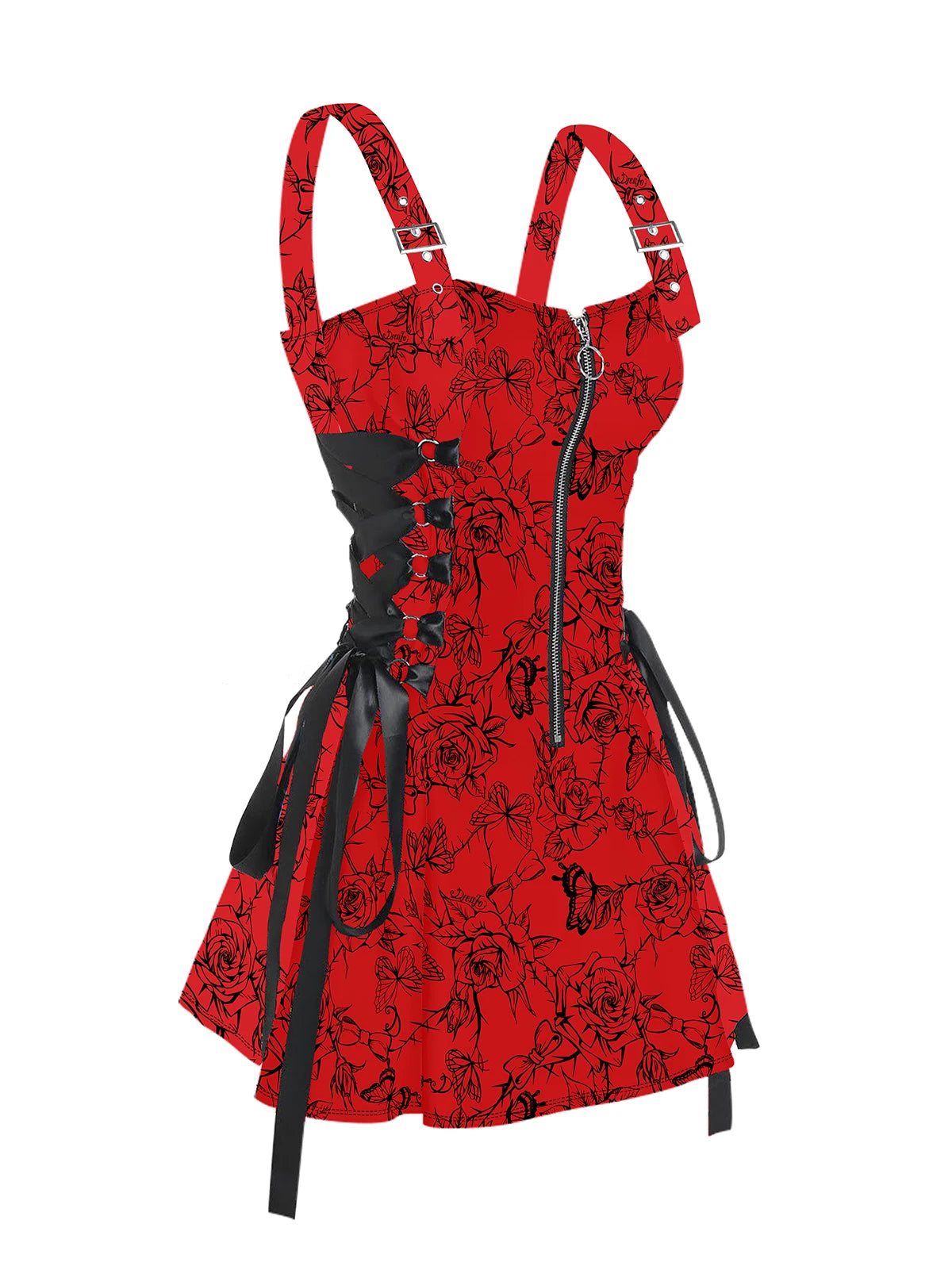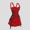 Punk Rock Gorset Czerwony w Róże z Szelkami
