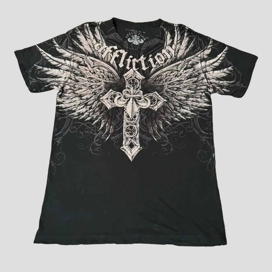 Punk Rock T-shirt met Vleugels en Grunge Kruis