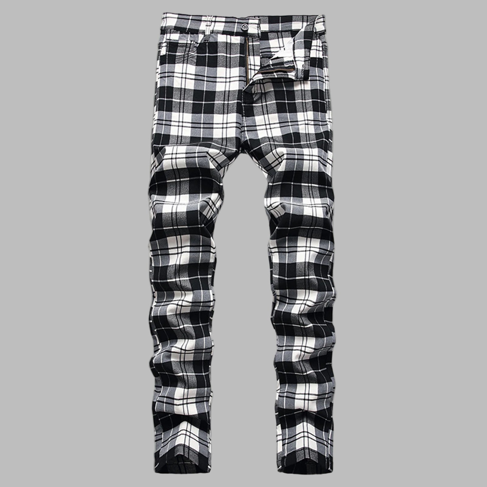 Punk Rock Zwart-Wit Geruite Slim Broek