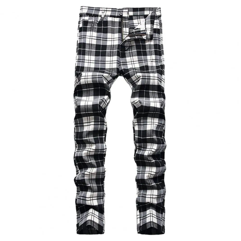 Punk Rock Zwart-Wit Geruite Slim Broek Bekijk opties