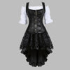 Punk Rock Zwarte Jurk met Leren Korset en Asymmetrische Kanten Rok 4XL
