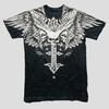 Punk T-shirt Grunge met Schedels en Gevleugeld Kruis