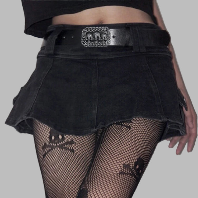 Punk Zwarte Cargo Jeansrok met Metalen Riem