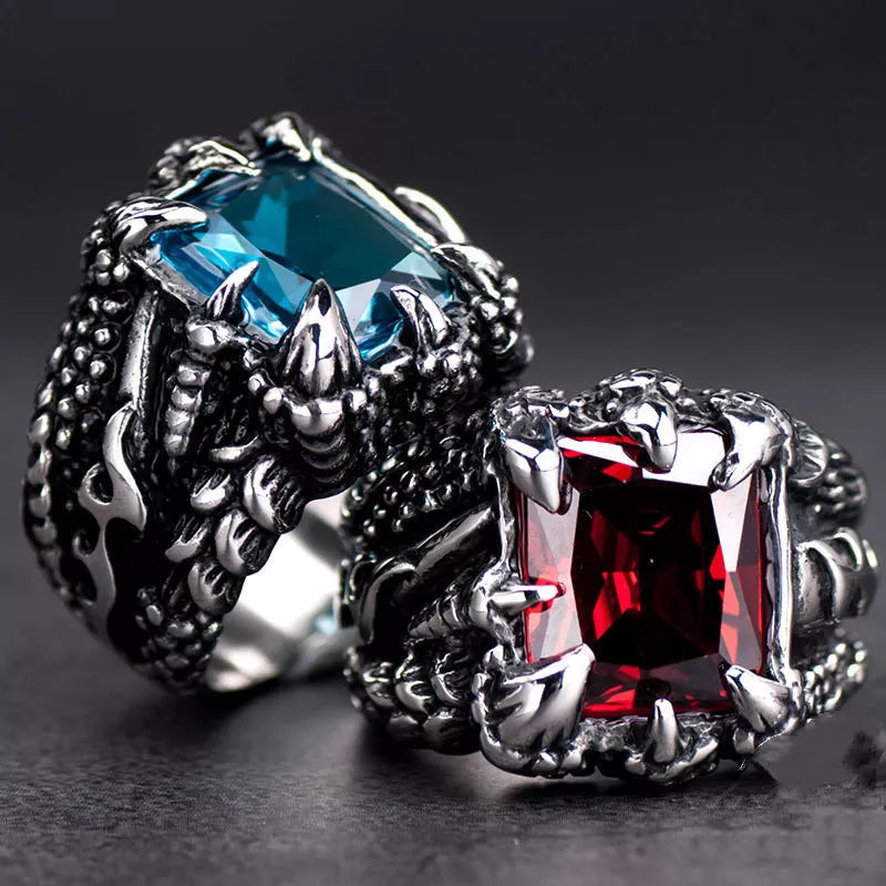 Ring met blauwe gothic draak