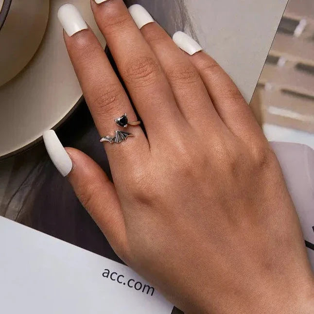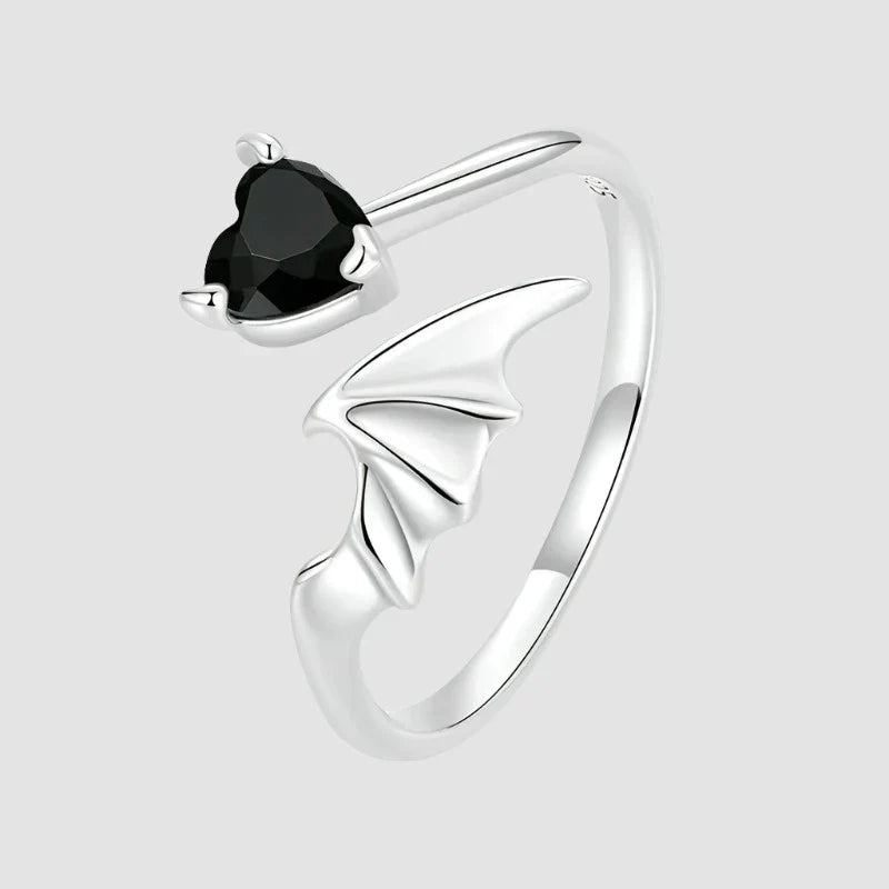 Ring met zwarte vleugel en hart, 925 sterling zilver