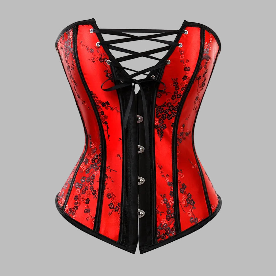 • Kenmerken: Bloemenpatroon, jacquard, korset boven de buste, vetersluiting aan de achterkant
