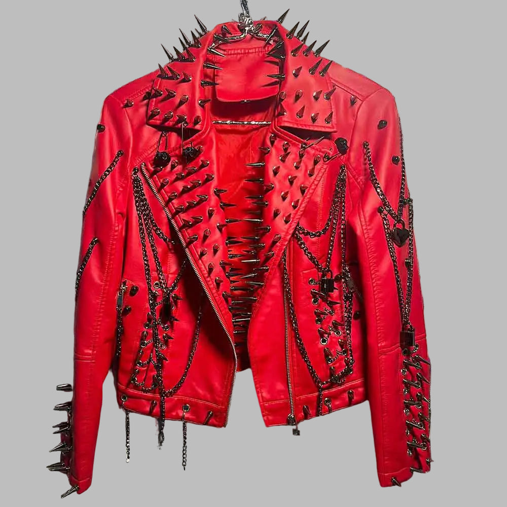 Rode Punkjas met Studs en Kettingen Bekijk opties