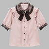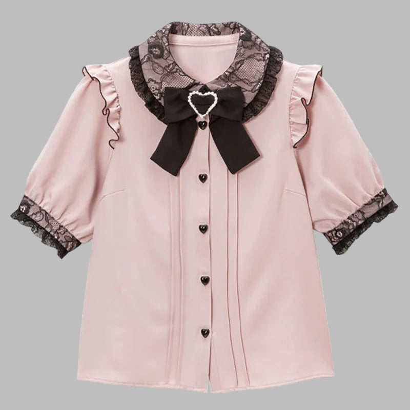 Roze Gotische Blouse met Zwarte Kant en Decoratieve Strik Kawaii Jirai Kei