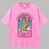 Roze Oversized Rock T-shirt met Surfer Schedel