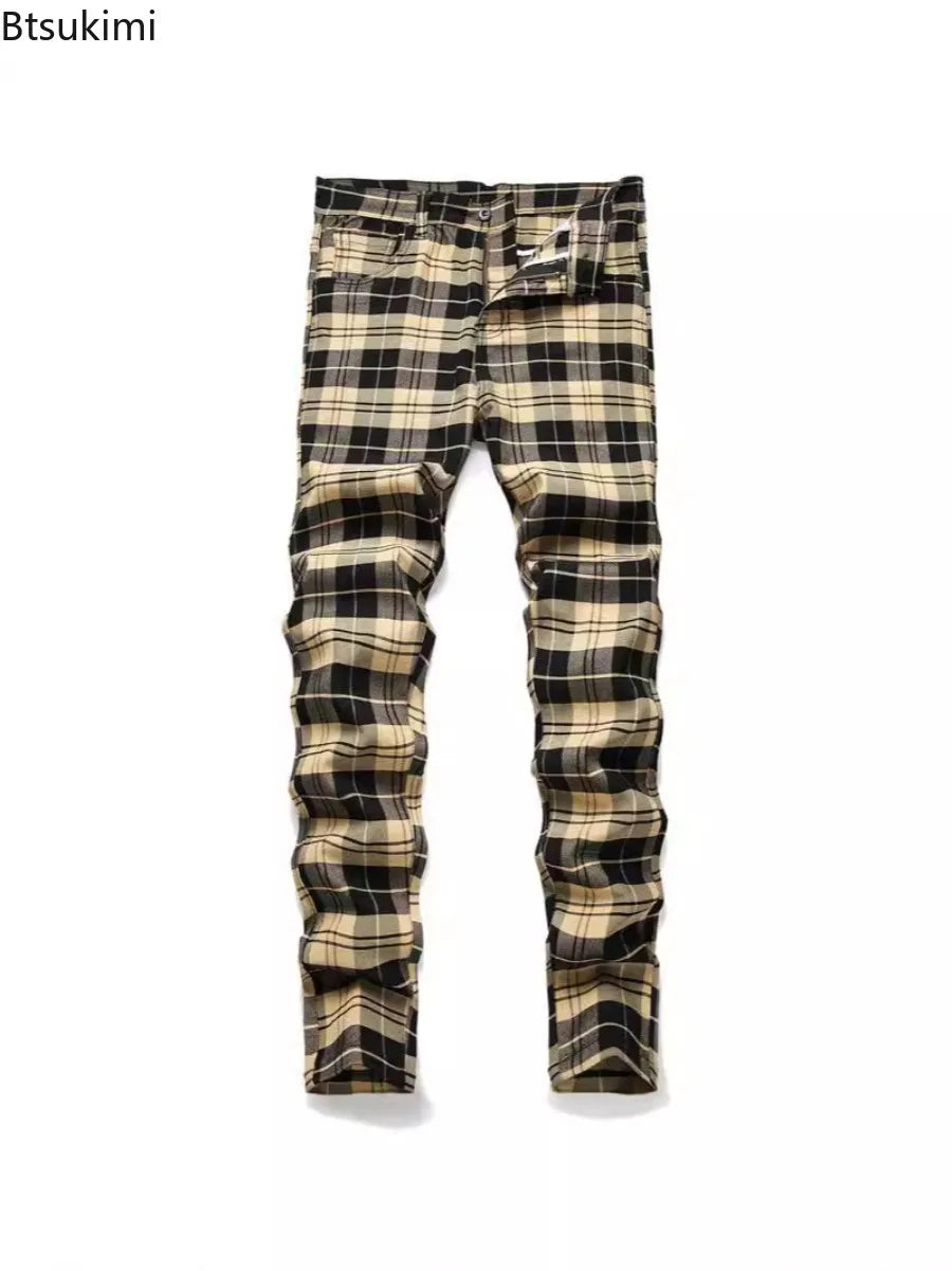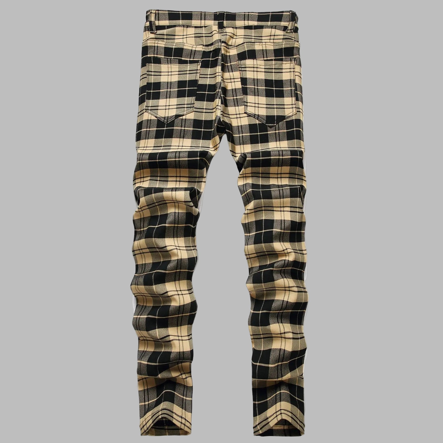 Steampunk Beige-Zwarte Geruite Broek Grunge