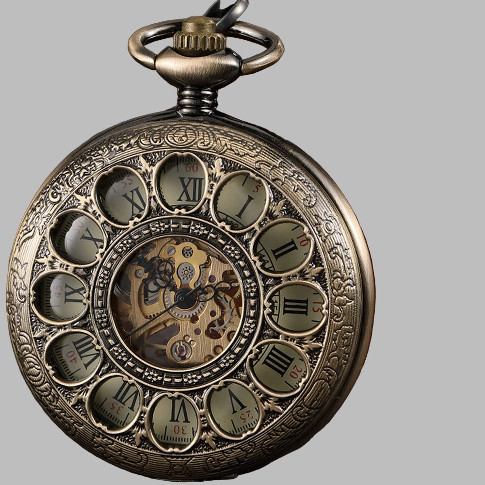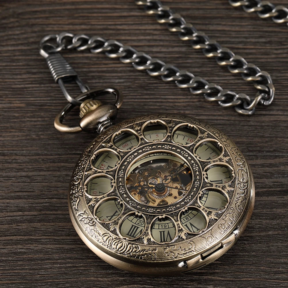 Steampunk Bruine Mechanische Zakhorloge met Ketting Bekijk opties