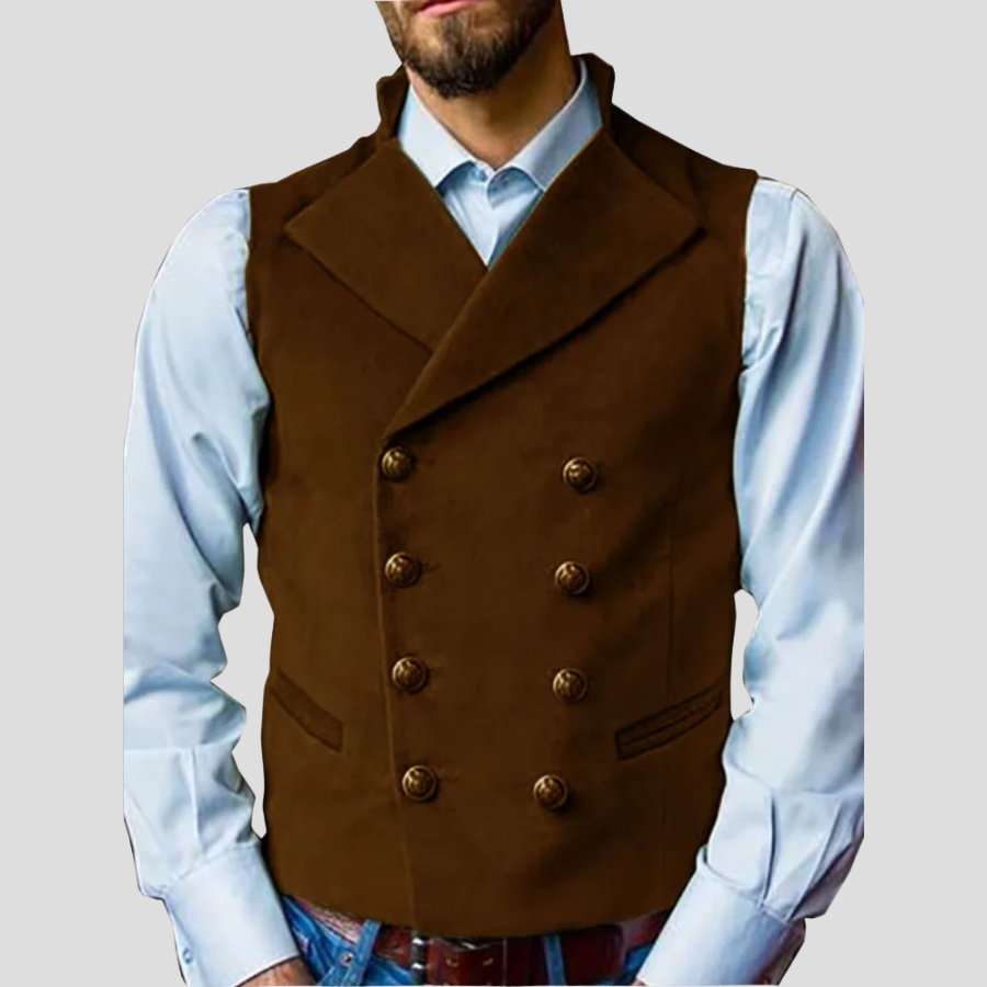 Steampunk Dubbelrijig Bruin Klassiek Gilet met Knopen