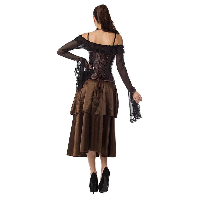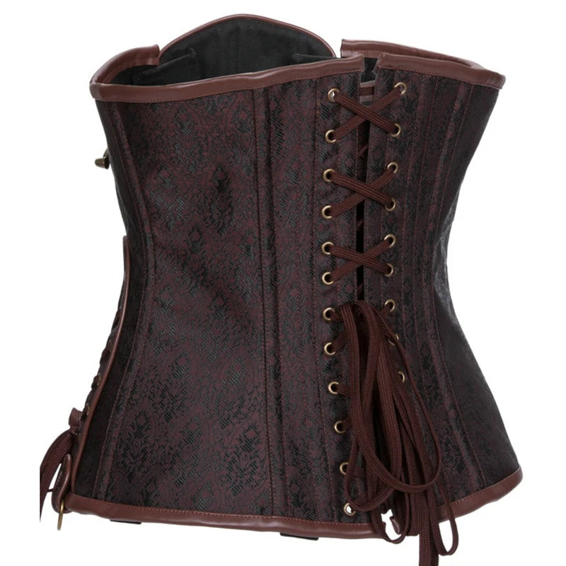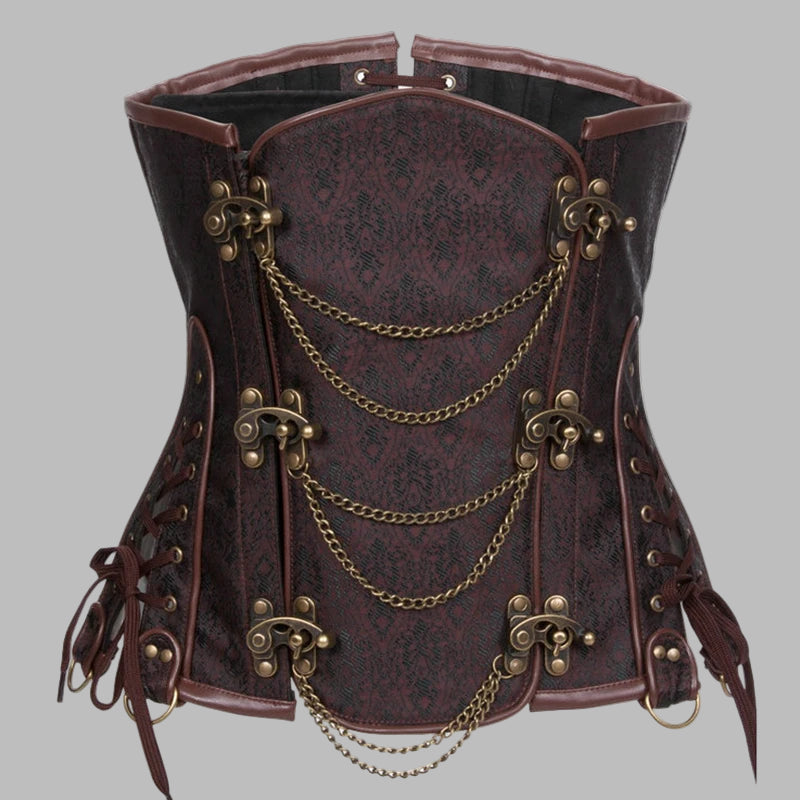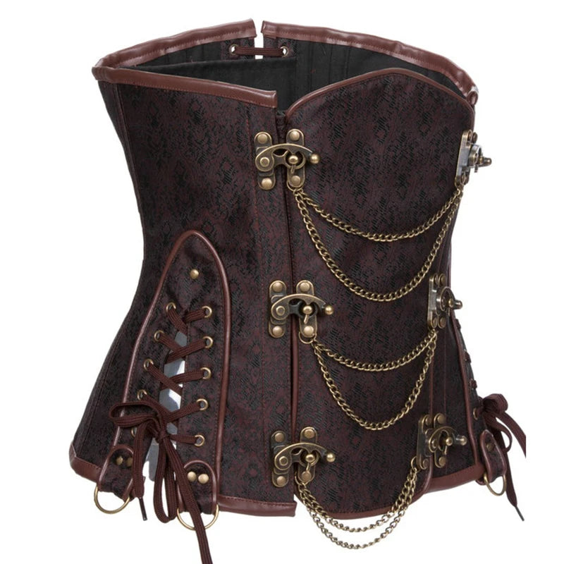 Steampunk gothic bruine korset met kettingen en messing gespen