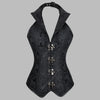 Steampunk gothic korset met hoge kraag en metalen sluitingen zwart