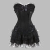 Steampunk gothic korset zwart met strikken en kanten ruches