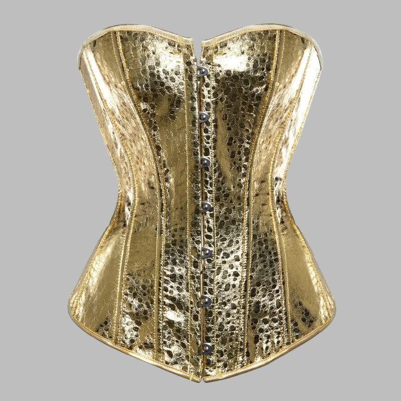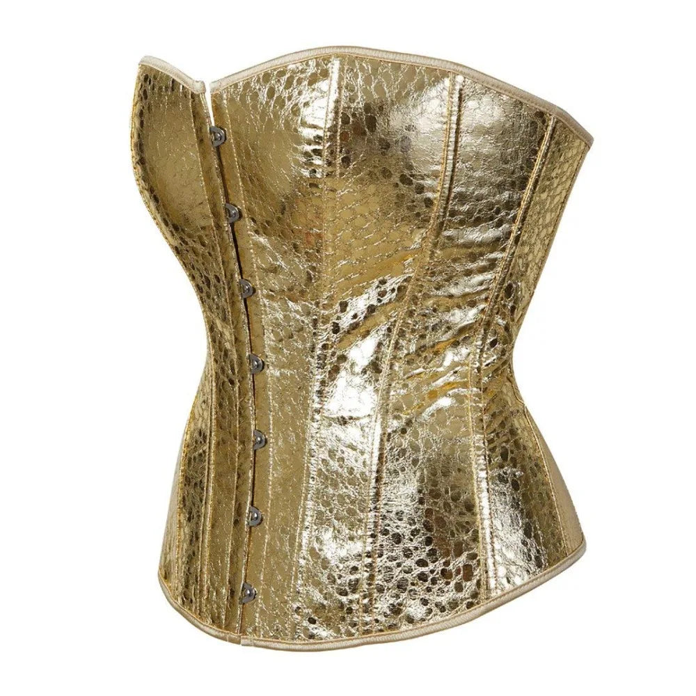 Steampunk Korset Goud Metallic met Slangenhuidpatroon