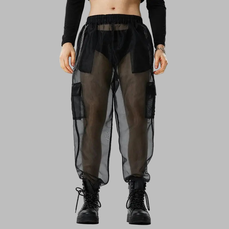 Steampunk Grijze Cargo Broek met Mesh Stedelijk Bekijk opties