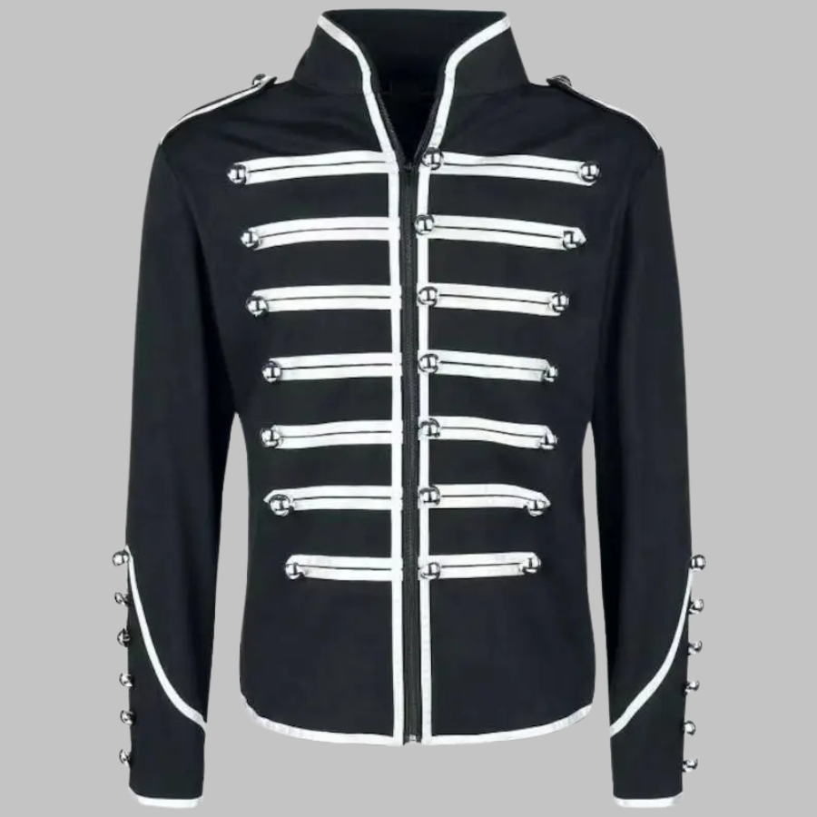 Duik in de retro-futuristische wereld met deze herenjas geïnspireerd door steampunk en gothic stijl. Met een hoge kraag, decoratieve knopen en elegante patchwork is het perfect voor themafeesten, verkleedbals, concerten of gewoon als een origineel element van je dagelijkse outfit.