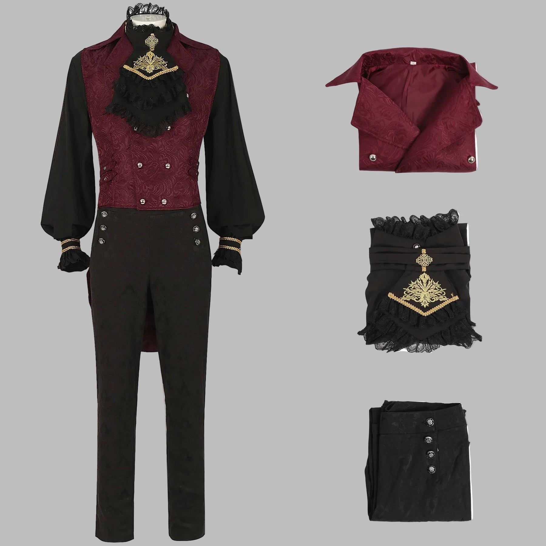 Steampunk Heren Set Bordeaux Zwart met Kant Gouden Details Bekijk opties