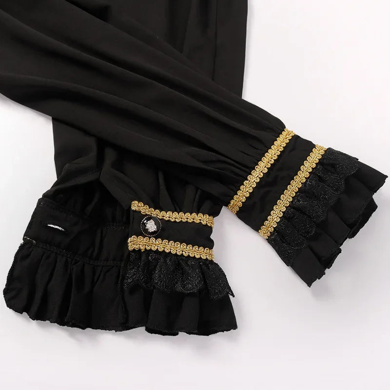 Steampunk Heren Set Bordeaux Zwart met Kant en Gouden Details