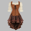 Steampunk Jurk met Vetersluiting en Asymmetrische Rok Bruin 6XL