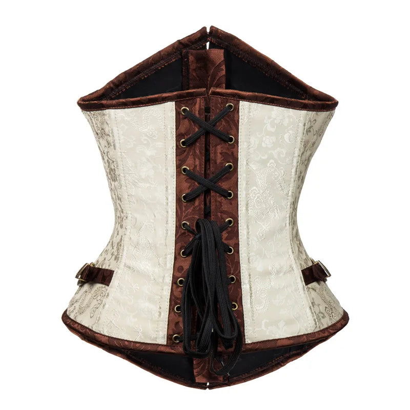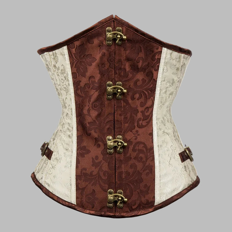 Steampunk korset bruin-crème retro met metalen gespen Bekijk opties