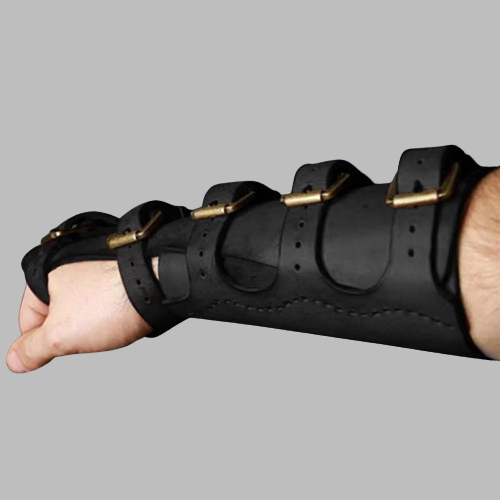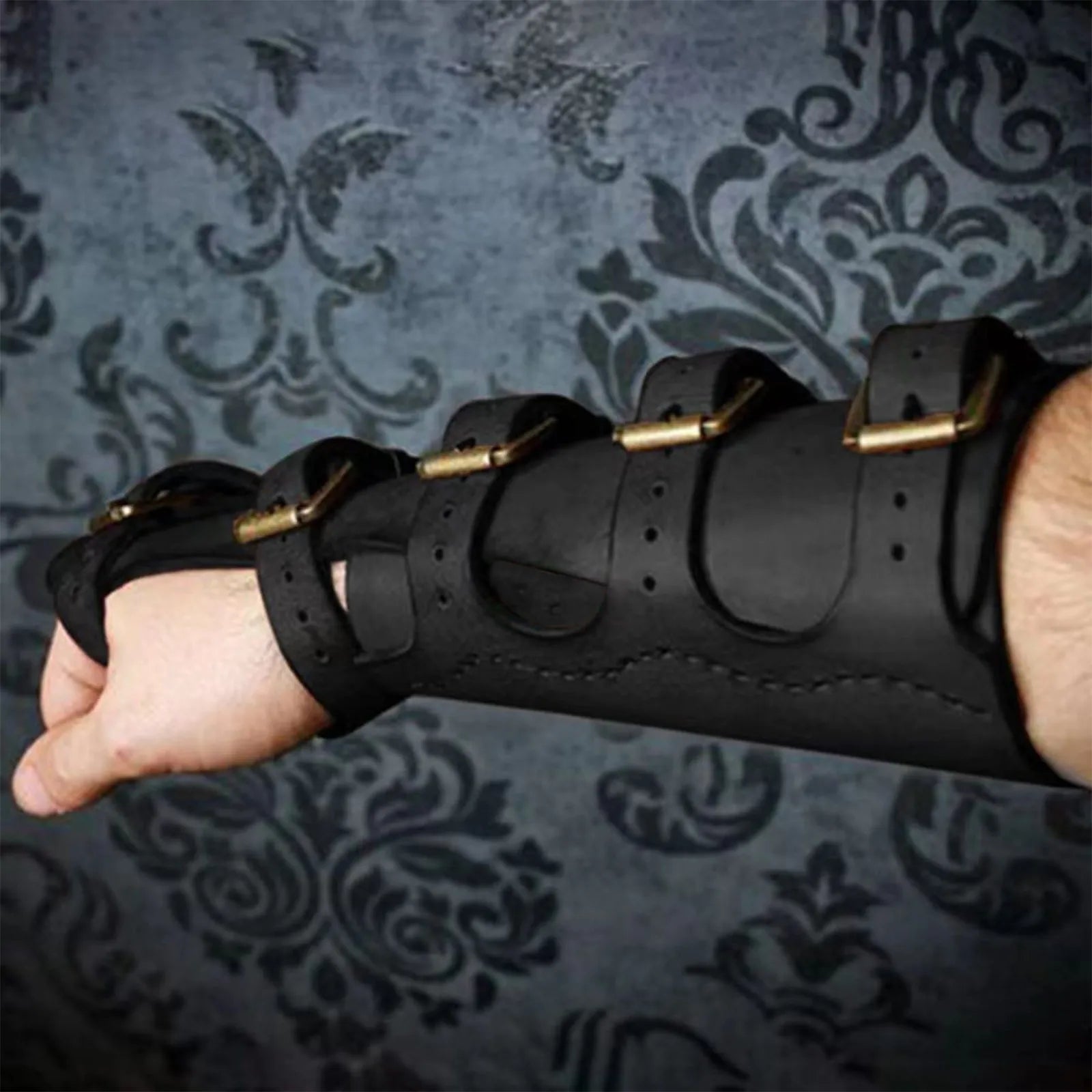 Zwarte Steampunk Leren Beschermers met Messing Gespen