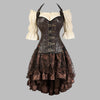 Steampunk Leren Korset met Gespen en Kanten Rok