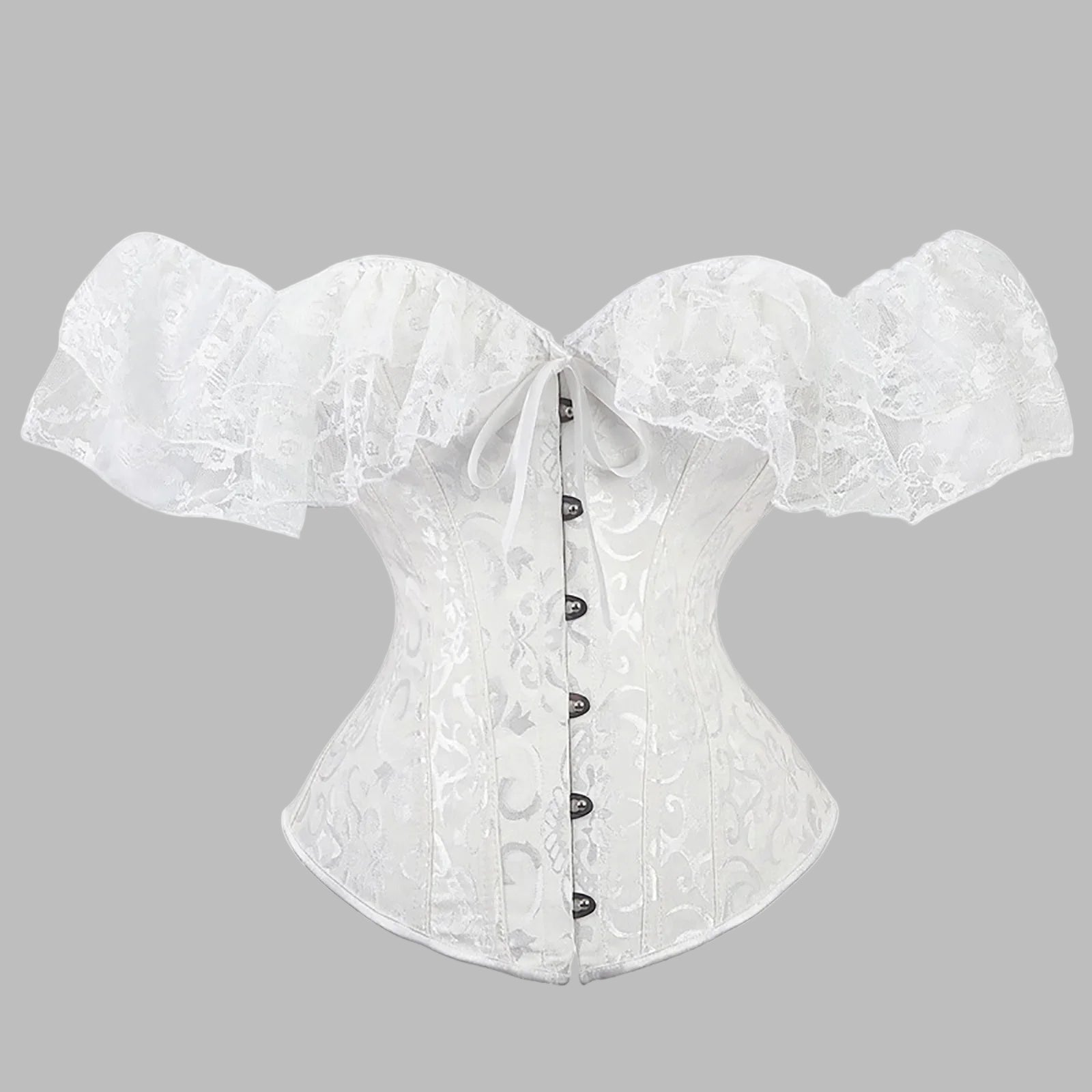 Steampunk Witte Kanten Korset met Pofmouwen en Metalen Haken Bekijk opties