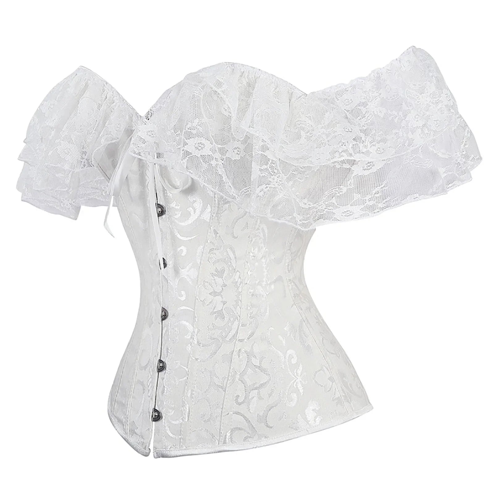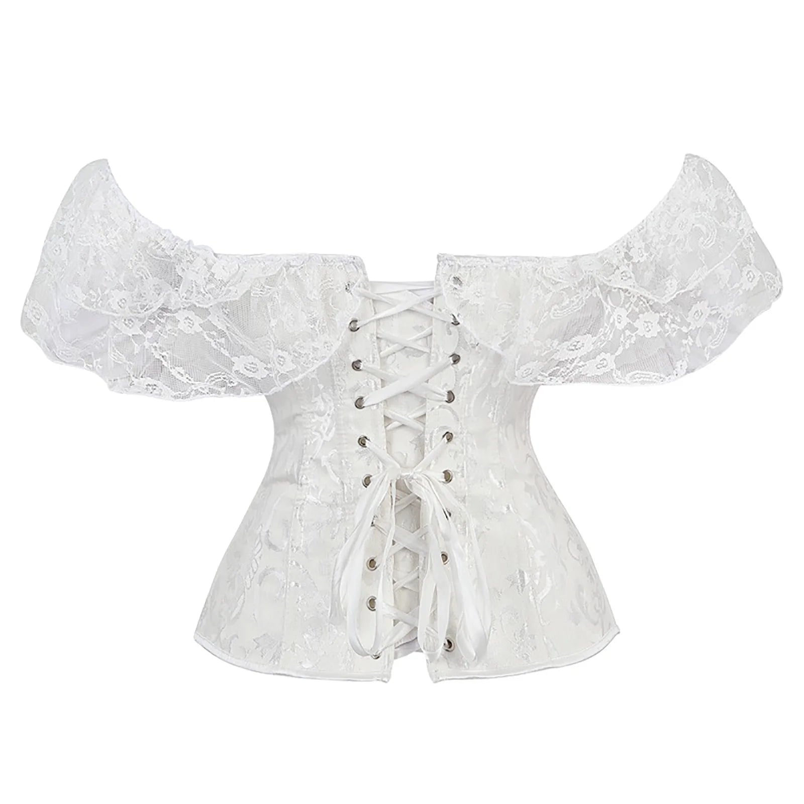 Steampunk Wit Kanten Korset met Pofmouwen en Metalen Haken