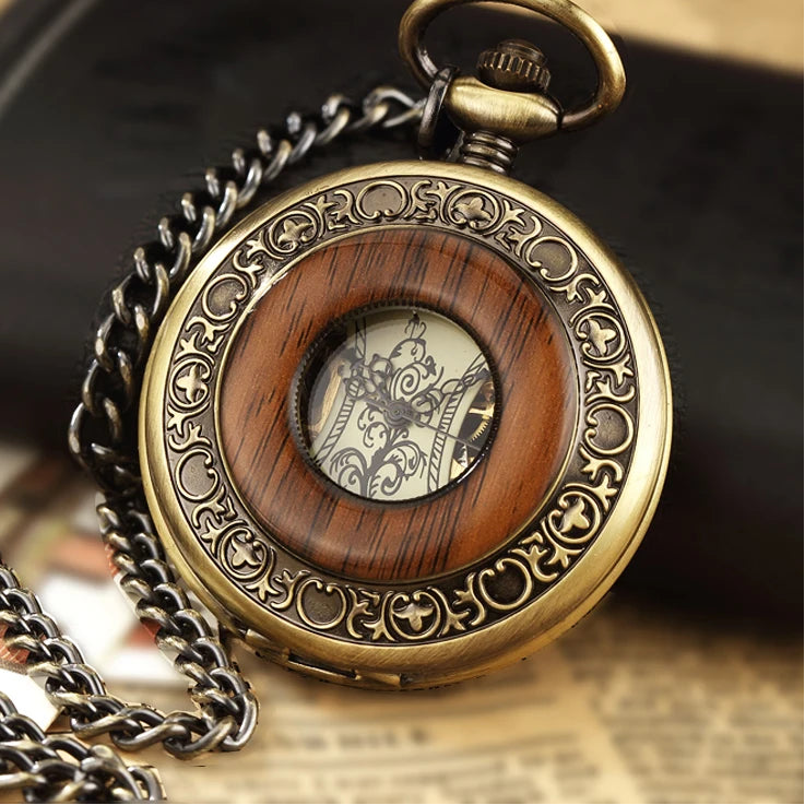 Steampunk Zakhorloge met Houten Inleg Bruin
