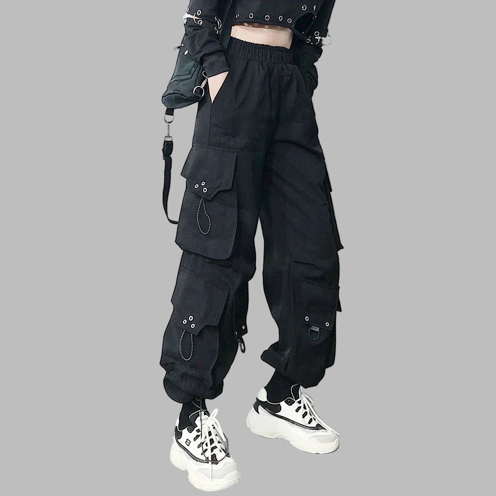 Tactische Punk Broek met Zakken Kettingen Zwart Grunge