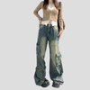 Versleten Cargo Jeans Rock met Vintage Groene Zakken Bekijk opties