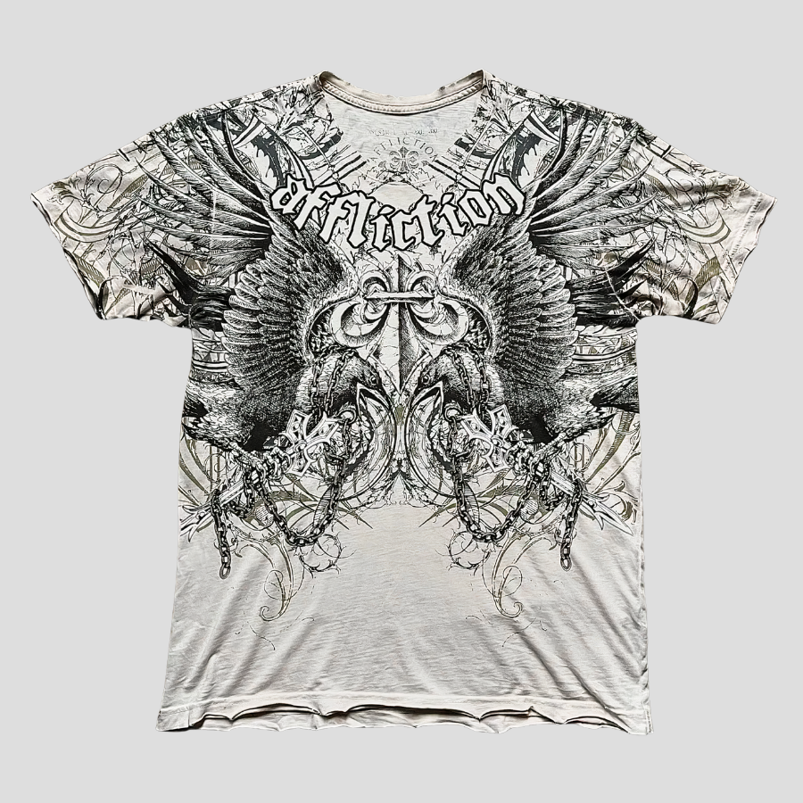 Wit T-shirt met Gotische Vleugels en Kruis 4XL
