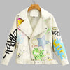 Witte Leren Punk Graffiti Bikerjacke