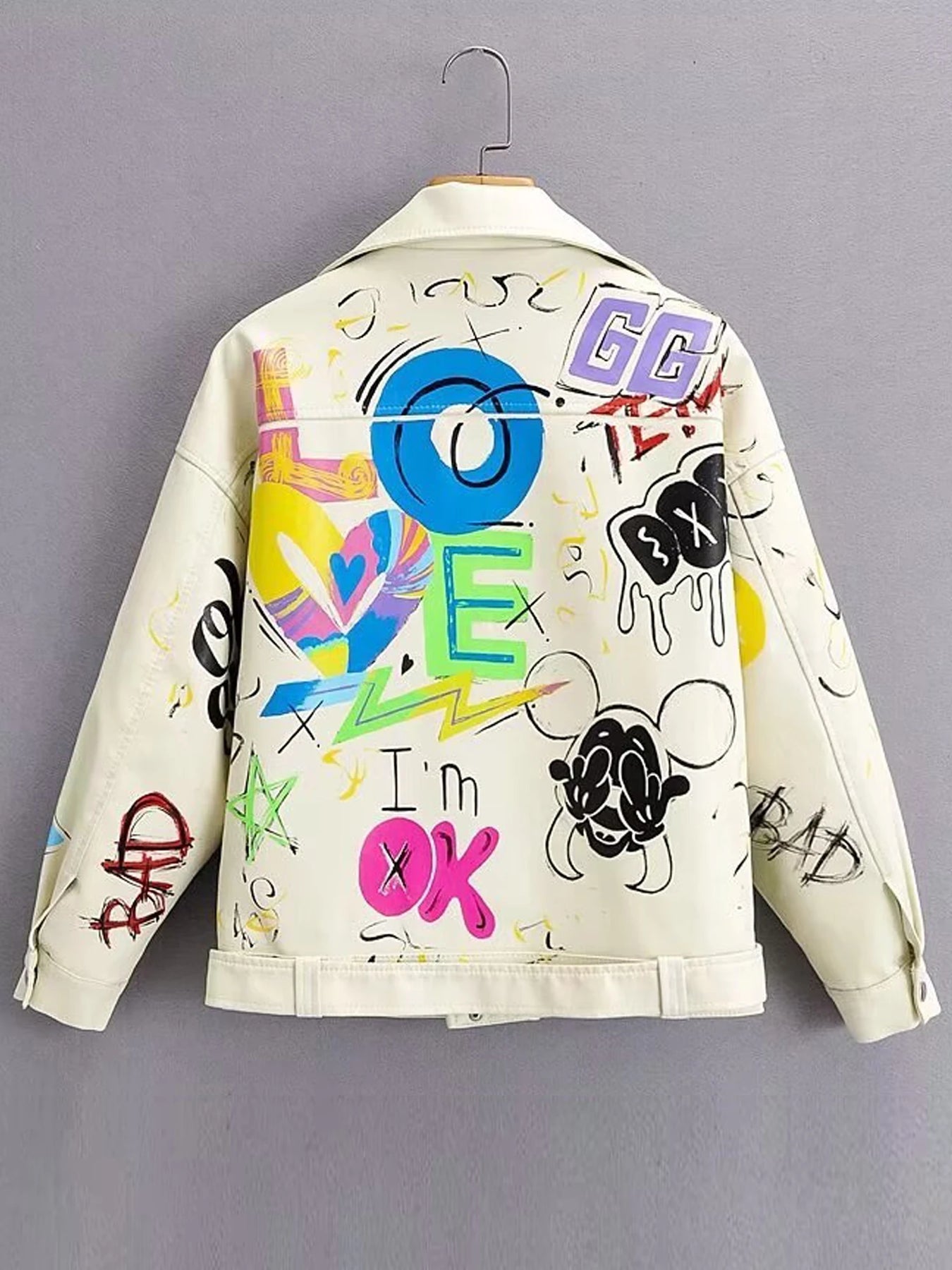 Witte Leren Punk Graffiti Bikerjacke Bekijk opties