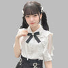 Witte Lolita Blouse met Parel Kraag en Zwarte Strik Jirai Kei